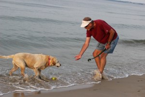 Since moving here we have started a ritual of walking over to the beach every morning and evening with Queenie, our Labrador Retriever, for a game of fetch. It involves the greatest invention since the internal combustion engine, the ubiquitous “Chuck-It.” This clever device really levels the playing field for those of us in our later years of human development. Working much like a catapult, it allows anyone to pretend they are the Sandy Koufax of the beach. (Get it?…Sandy….oh, well) Anyway, following are my top 10 reasons to own a Chuck-it:
