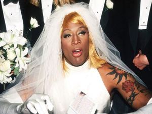 “Dear Find kinds of wedding dress, thank you for visiting my blog. I’m glad you have it in your favorites but you are wrong about one thing. Although as a red-blooded American male, I have certainly done my share of checking rears, I am trying to cut back, so please don’t make that endeavor any tougher than it is already. I did go to your site but have decided that if the time comes that I ever marry again, “we” think “we” will stay with the traditional tuxedo. However, you might want to contact Dennis Rodman, the gentleman pictured below, who definitely could be a potential client.”